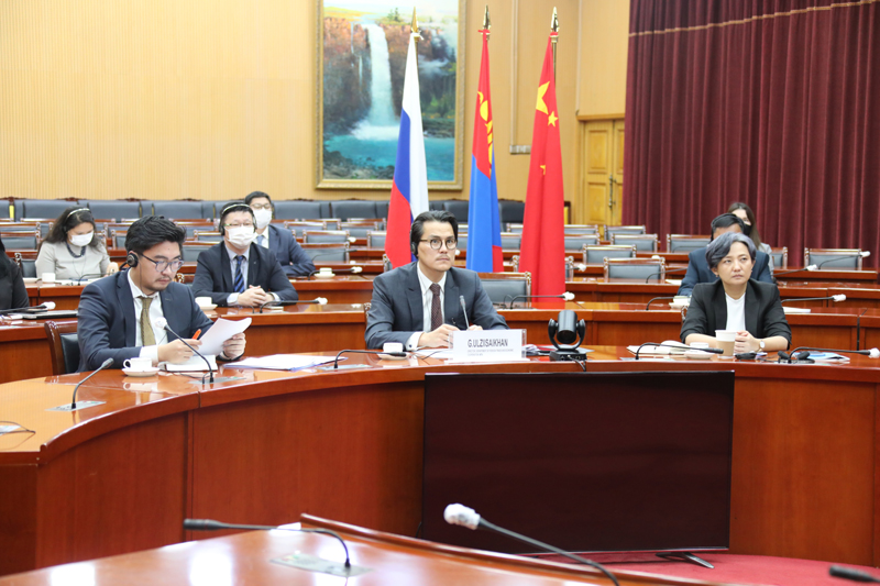 /2021-11-12/Монгол-Орос-Хятадын эдийн засгийн коридор байгуулах хөтөлбөрийн хэрэгжилтийг урагшлуулах шинжээчдийн түвшний V уулзалтыг энэ оны 11 дүгээр сарын 12-ны өдөр цахим хэлбэрээр зохион байгуулав. Уулзалтад монголын талын төлөөлөгчдийг ГХЯ-ны Гадаад худалдаа, эдийн засгийн хамтын ажиллагааны газрын захирал Г.Өлзийсайхан, оросын талын төлөөлөгчдийг тус улсын Эдийн засгийн хөгжлийн яамны Хоёр талын хамтын ажиллагааны хөгжлийн газрын захирал А.Ю.Дианов, хятадын талын төлөөлөгчдийг тус улсын Хөгжил шинэчлэлийн хорооны Бүс нутгийн нээлттэй хөгжлийн газрын дэд дарга Жан Мин нар тэргүүлж, хоёр талын холбогдох албаны өргөн хүрээтэй төлөөлөгчид оролцов. дэлгэрэнгүй
